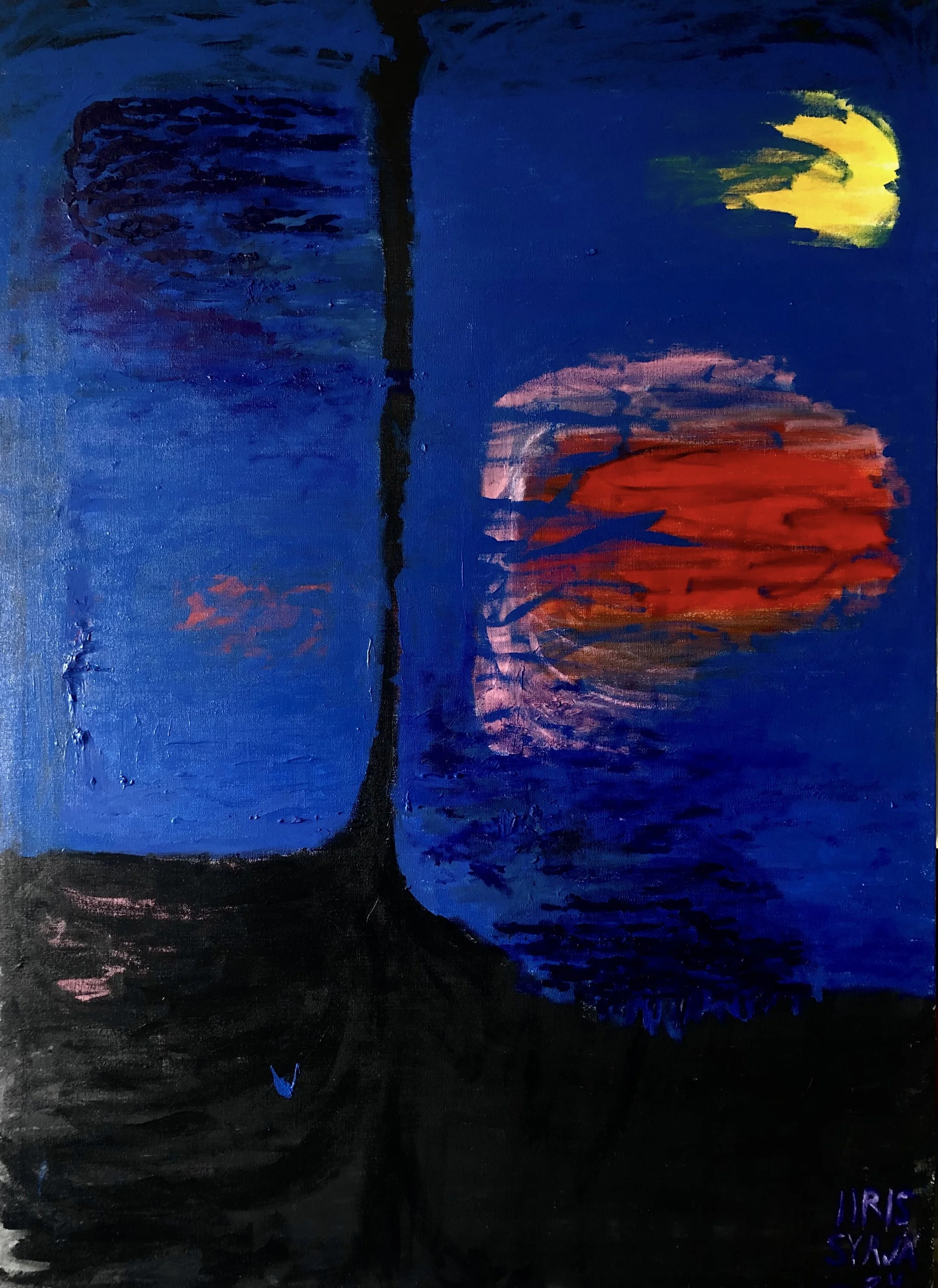 The starting point of Iiris’s paintings is in trash material - dried out ink, leftover papers, pieces of wood. She loves the abandoned material, because she thinks it has the same kind of sorrow that in those people who are not invited to the parties.
